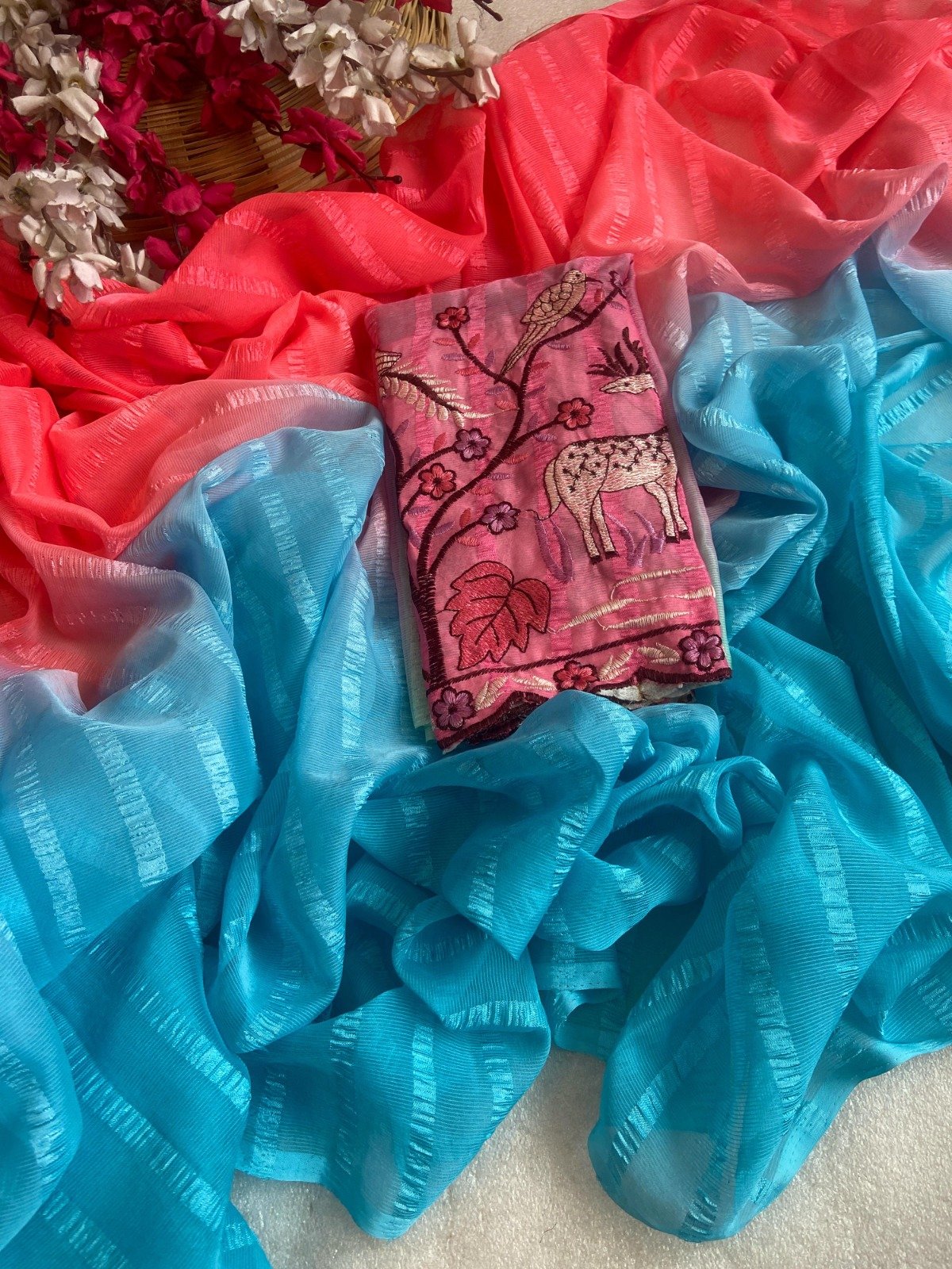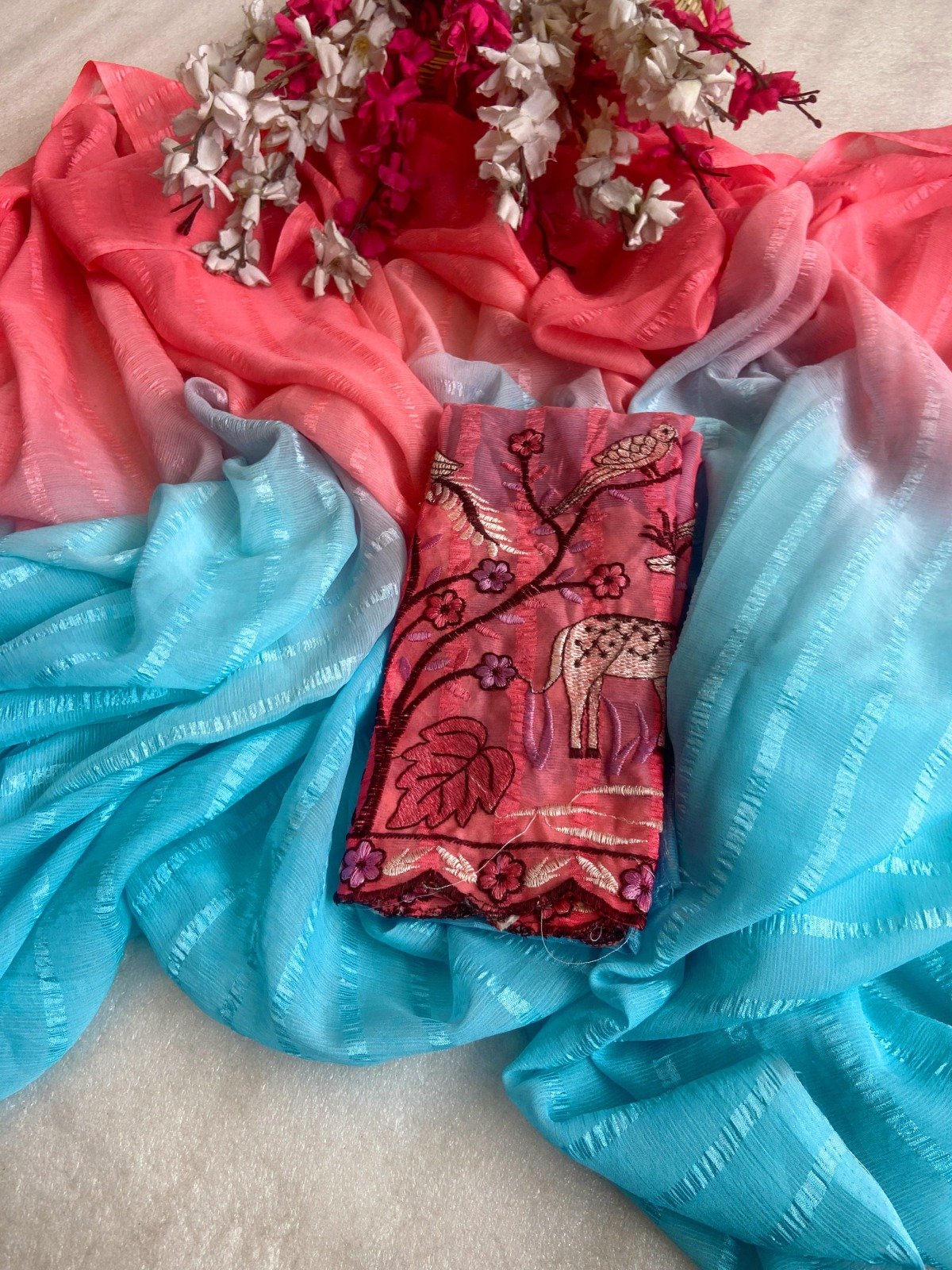 | Fabric: Chiffon (known for its light, sheer, and flowing drape.) |