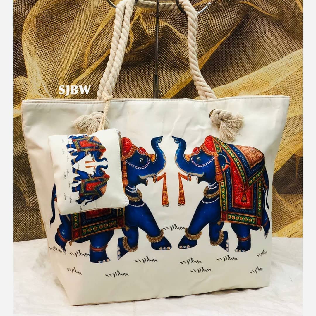 | Patterned Sides: The one side of the bag have a printed character inspired by traditional Rajasthani or ethnic patterns. |