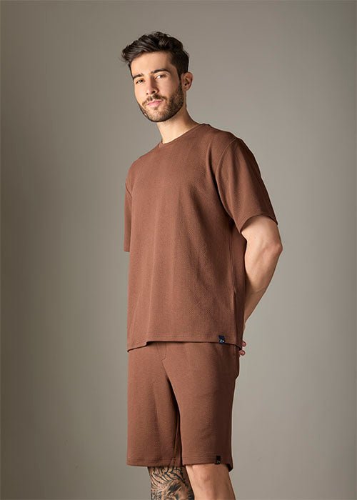 | Men’s co-ord set, which includes a T-shirt and shorts |