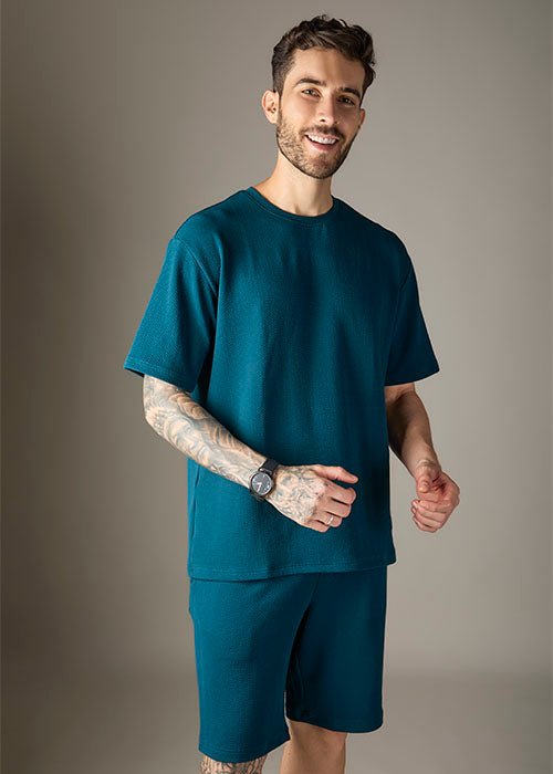 | Men’s co-ord set, which includes a T-shirt and shorts |