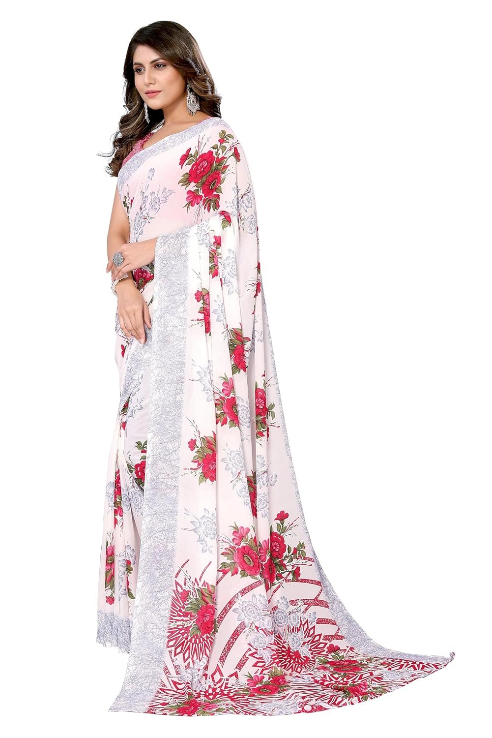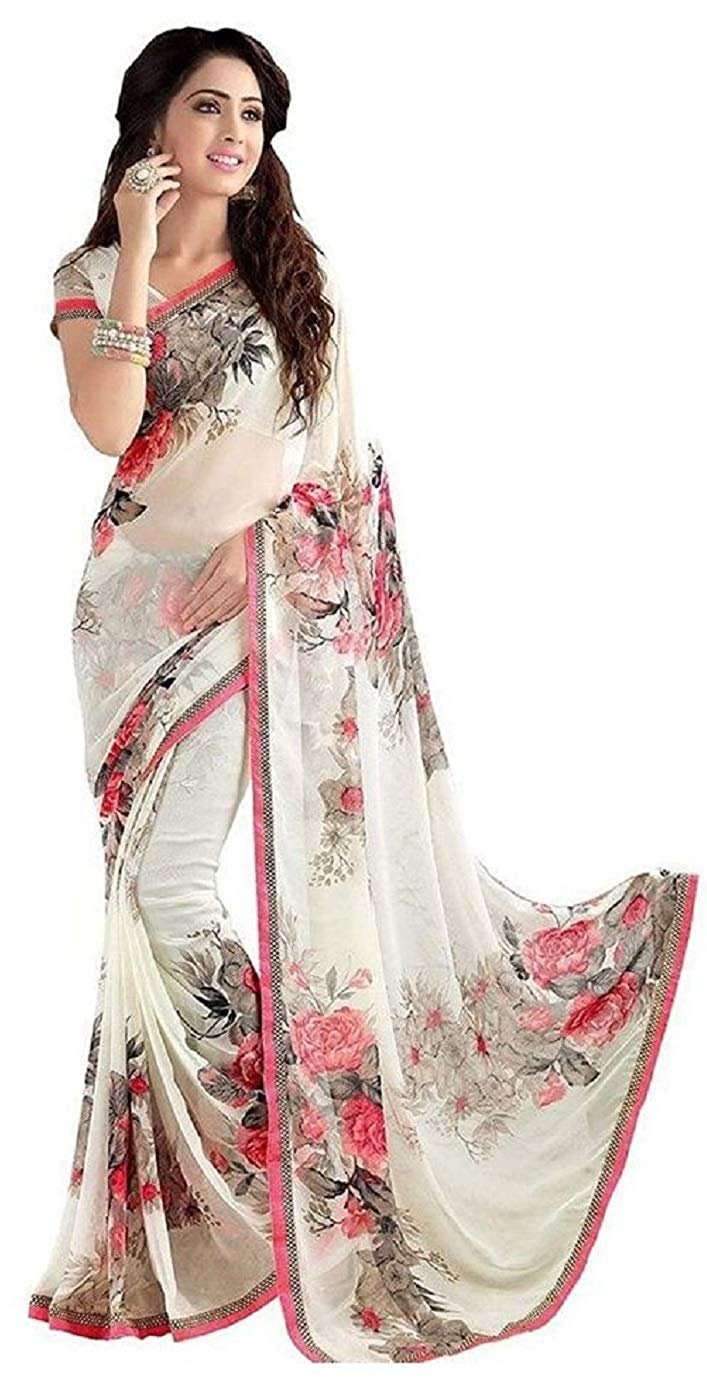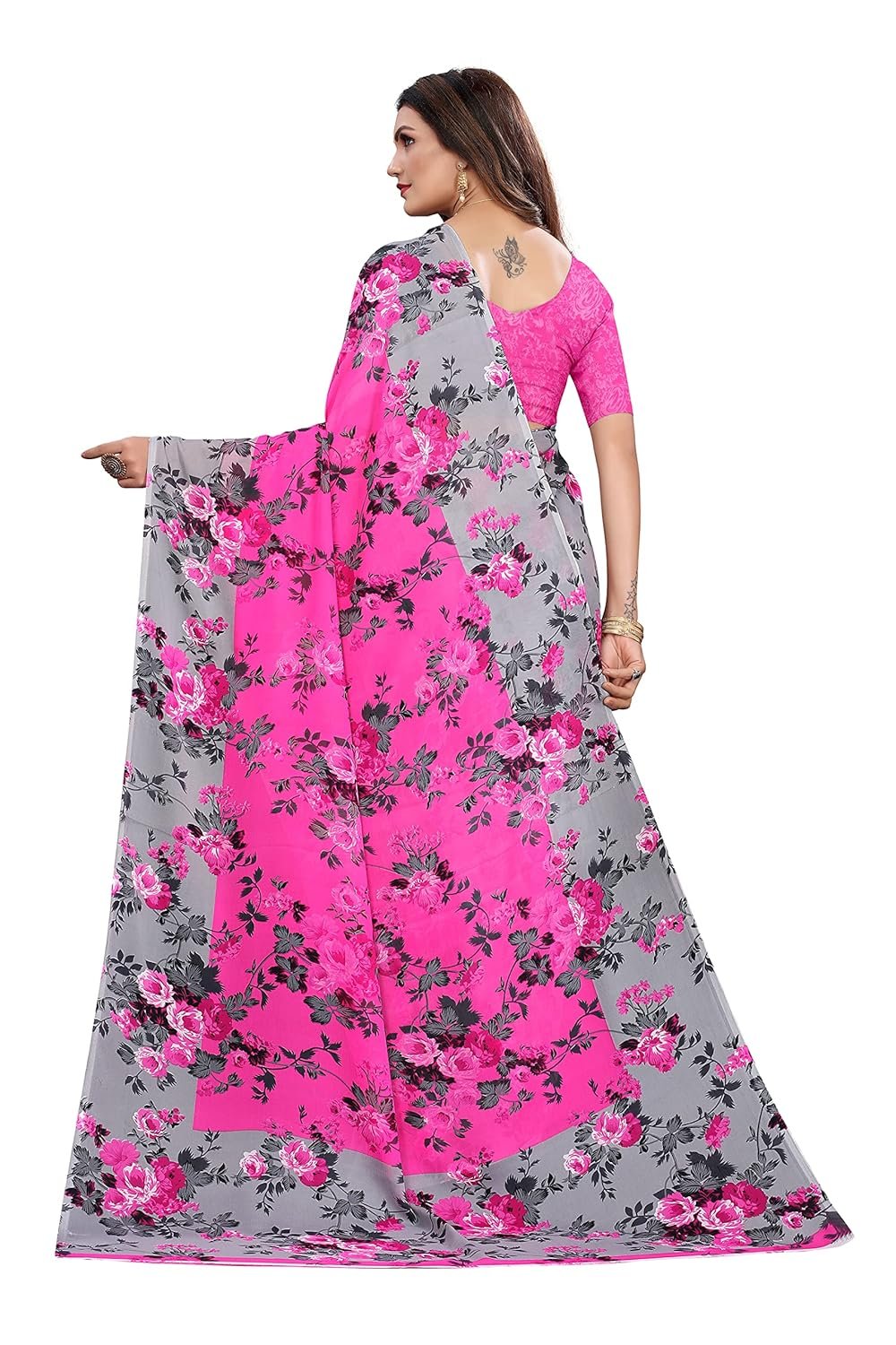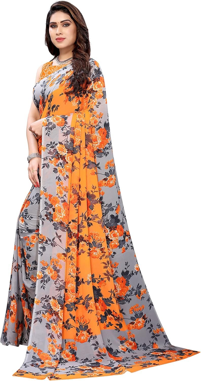 | Elegant, Lightweight, very comfortable Saree with floral printed patterns throughout except blouse. |