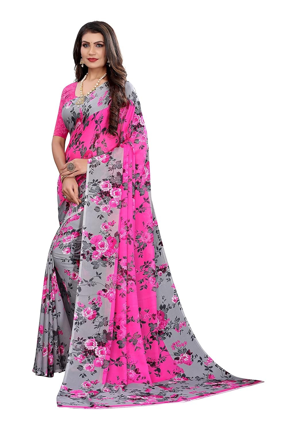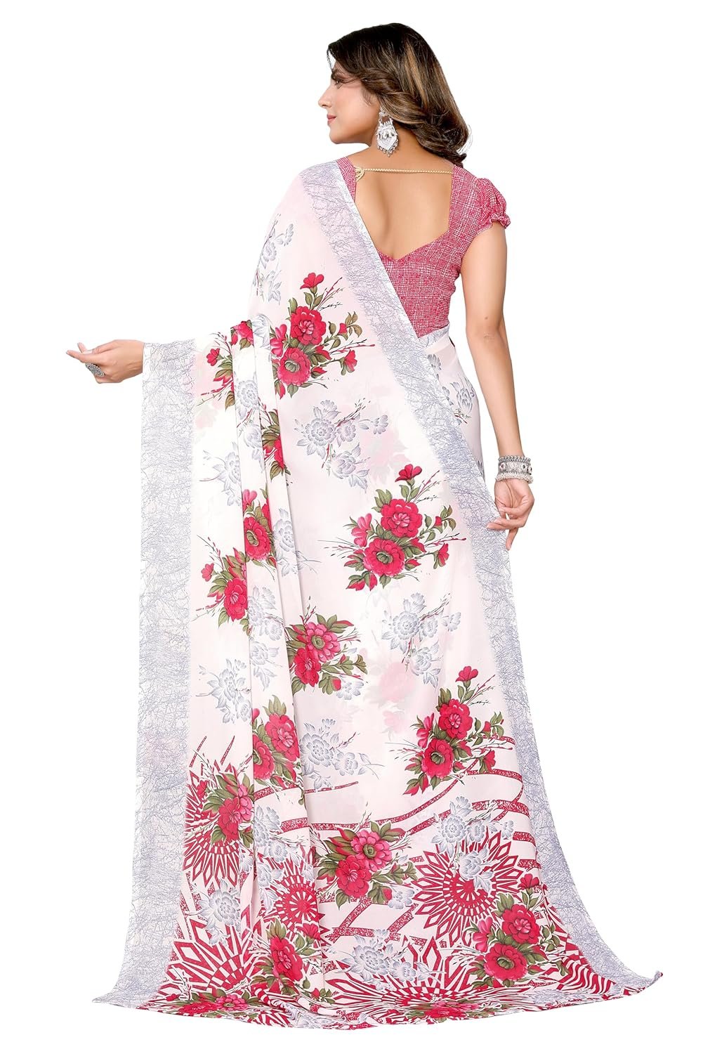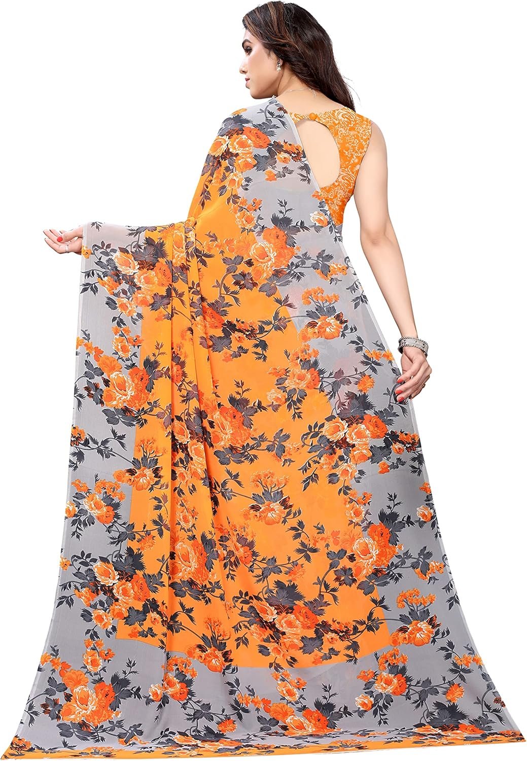 | Elegant, Lightweight, very comfortable Saree with floral printed patterns throughout except blouse. |