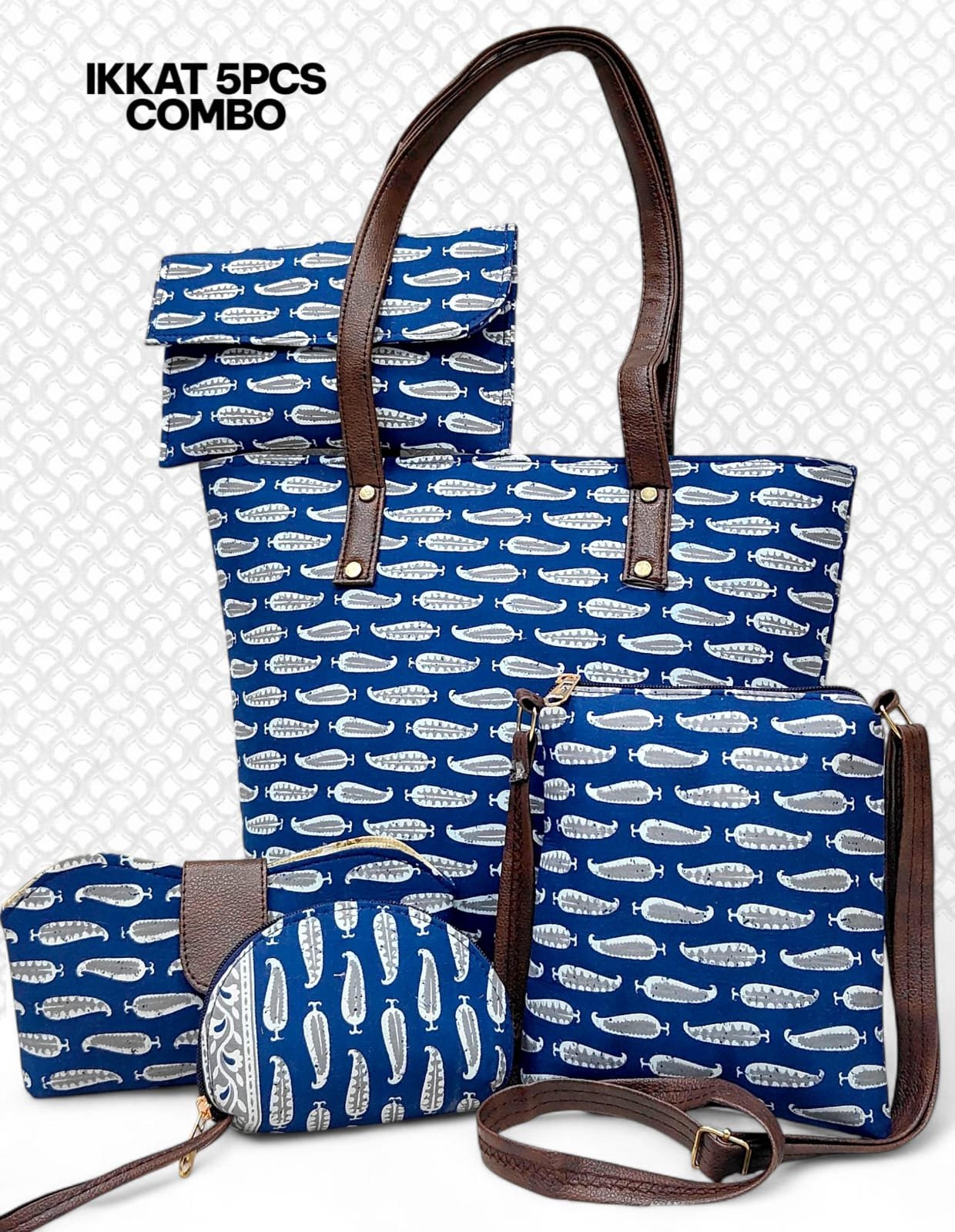 | Handcrafted Tote Bag, (Set of 5) elegant & ethnic designs(Main bag with 2 Zip Partitions) |