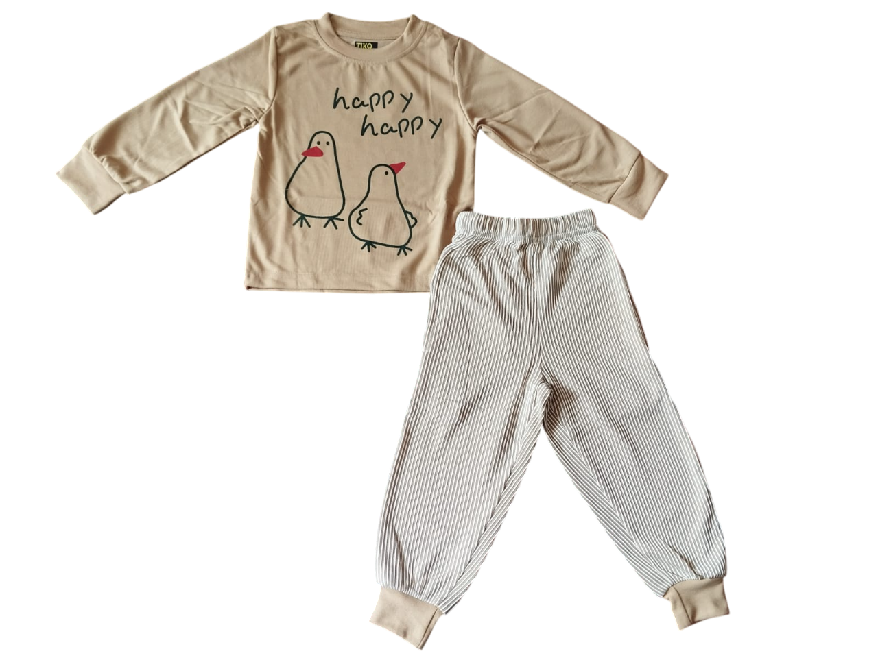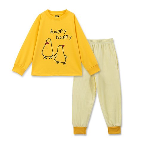 | Add a splash of fun to bedtime with this super cute night suit! ๐ The brightย top features two adorable duckies ๐ค and playful “happy happy” text, making it perfect for cheerful little dreamers. Paired with comfy ribbed jogger pants in light yellow with contrast cuffs โ it’s a cozy combo for sleep or play! ๐โจ | |