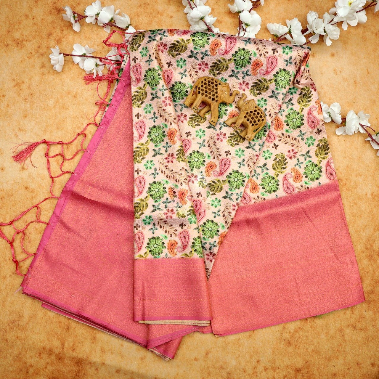 | Soft Silk Beautiful floral print Saree (Luxury Feel, comfortable, light weight) Wedding Special |